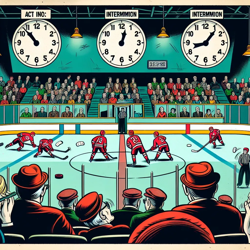 Каждый из трёх периодов разделён короткими перерывами, обычно длительностью 15-20 минут, которые дают игрокам возможность отдохнуть, а тренерам — скорректировать стратегию. Эти перерывы также важны для зрителей, чтобы успеть перевести дух после напряжённых моментов на льду.